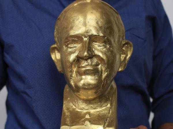 Un busto en bronce de 27 centímetros de altura y 4 kilos de peso con la figura del jerarca de la Iglesia católica, le será entregado este domingo al papa Francisco, inspirador de la obra.