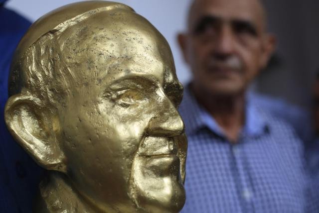 Un busto en bronce de 27 centímetros de altura y 4 kilos de peso con la figura del jerarca de la Iglesia católica, le será entregado este domingo al papa Francisco, inspirador de la obra.